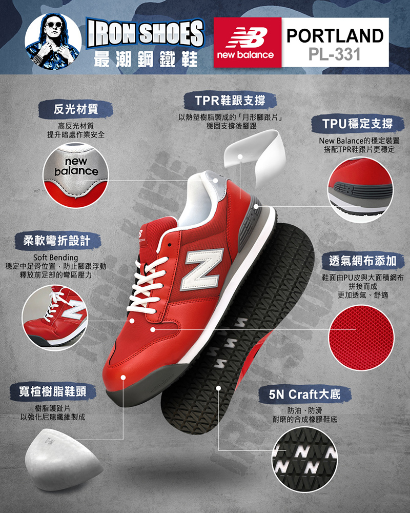 New Balance|PORTLAND 鞋帶款 防護鞋 - 紅色