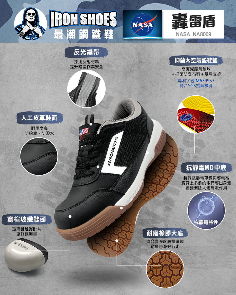 ▮抗靜電中底+橡膠大底:鞋身、內裡使用特殊抗靜電車線+導電布處裡,能將人體多餘電荷導向地面,達到消除人體靜電作用