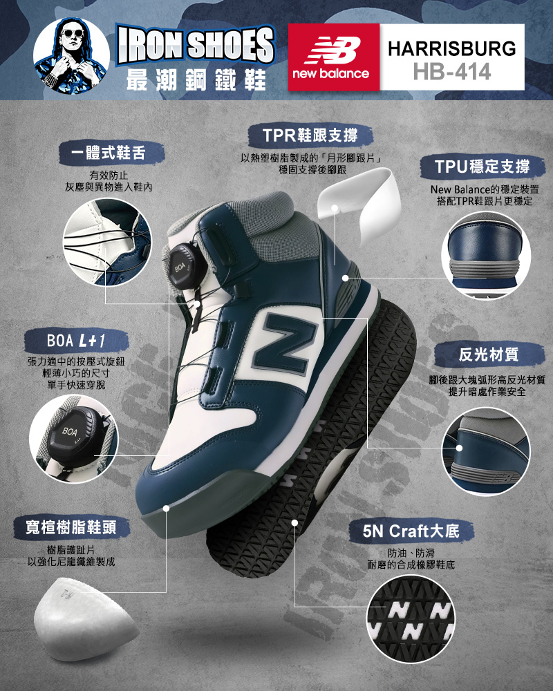 New Balance|Harrisburg BOA旋鈕款 高筒防護鞋 - 藍色