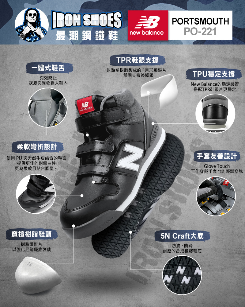 一體式鞋舌,有效阻擋碎石、沙塵、金屬屑或水份從鞋口掉入鞋內。